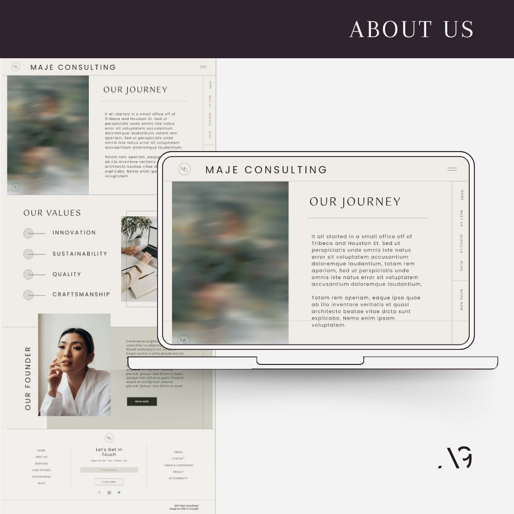 • Pages Include: Home, Meet Us, Collection - Services, Shop - Product/Service Details, Case Studies, Testimonials, Contact, Press, Blog Title Page, Single Blog Post